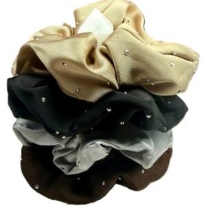 Sparkle in style! Medium elastic scrunchie with stones for a comfy, chic ponytail or bun.