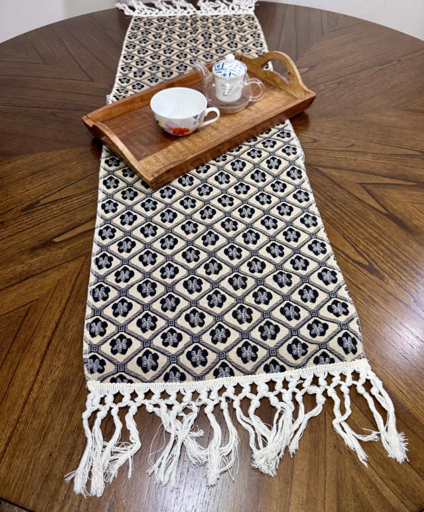 Elevate your dining experience with the Black Mediterranean Geometric Table Runner. Crafted from a premium blend of cotton and linen, this stylish piece brings a touch of coastal charm and ethnic elegance to any table. Featuring bold geometric patterns inspired by Mediterranean design, it adds a vibrant, yet sophisticated flair to your home decor. Perfect for both casual meals and special occasions, this durable table runner is the ideal finishing touch for your dining space. Whether used for a cozy breakfast or a festive dinner, it effortlessly combines beauty and practicality.