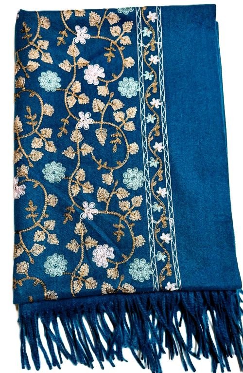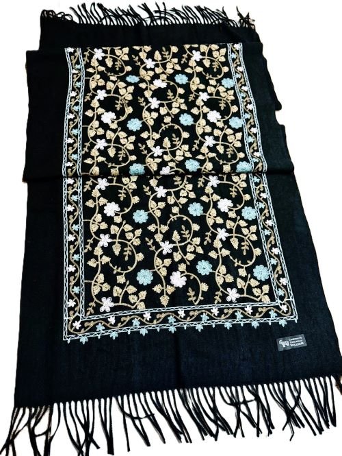 Cashmere Shawl- Hand-embroidered floral pashmina