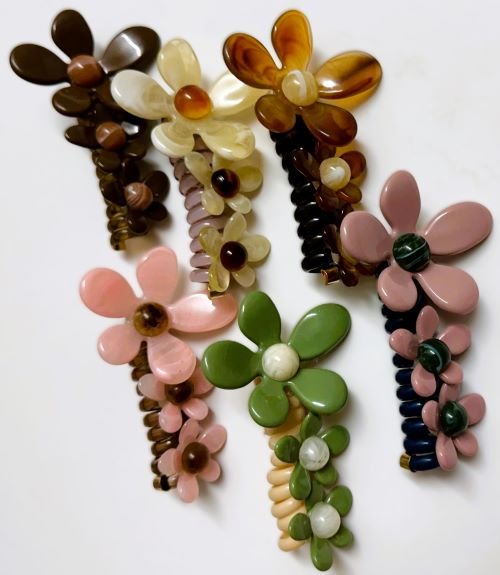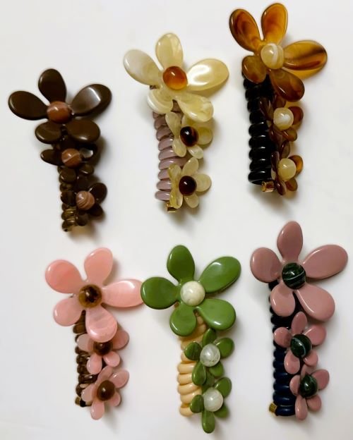 These adorable acrylic flower spiral hair ties feature a soft elastic telephone-cord design that holds your hair securely without pulling or creasing. Lightweight, durable, and comfortable for all-day wear, they’re perfect for ponytails, buns, or wearing on your wrist as a cute accessory