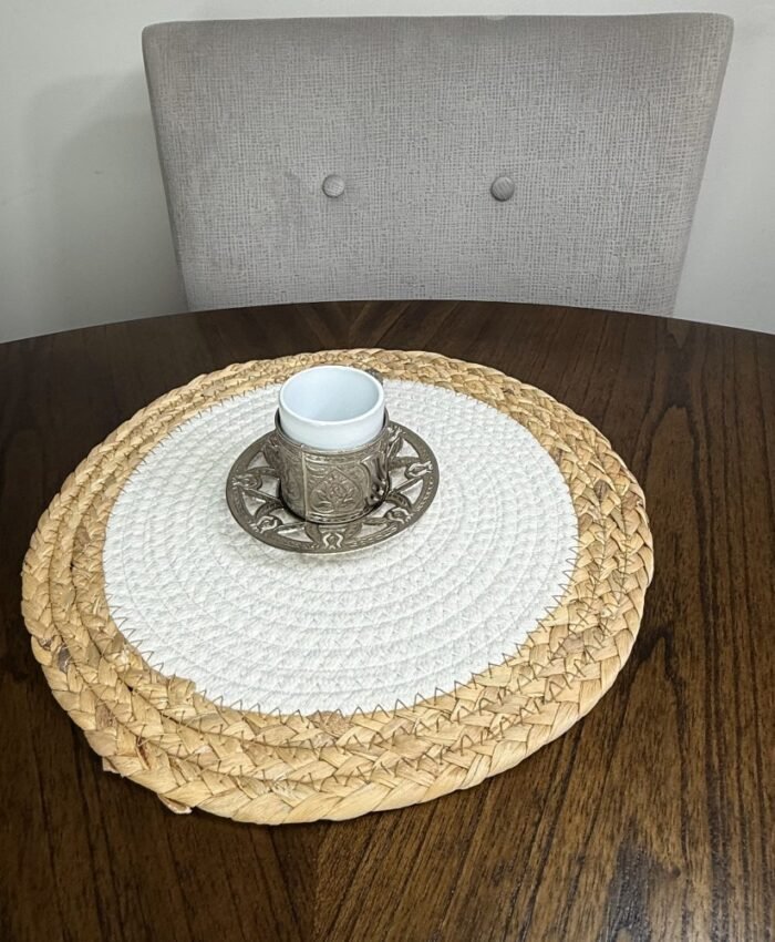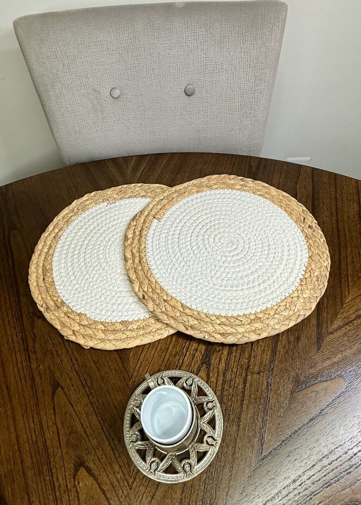 Add a touch of elegance to your dining table with these luxury round cotton rope woven placemats. Featuring a heat-resistant design and a stylish seagrass fringe, they offer a perfect blend of modern design and natural charm.